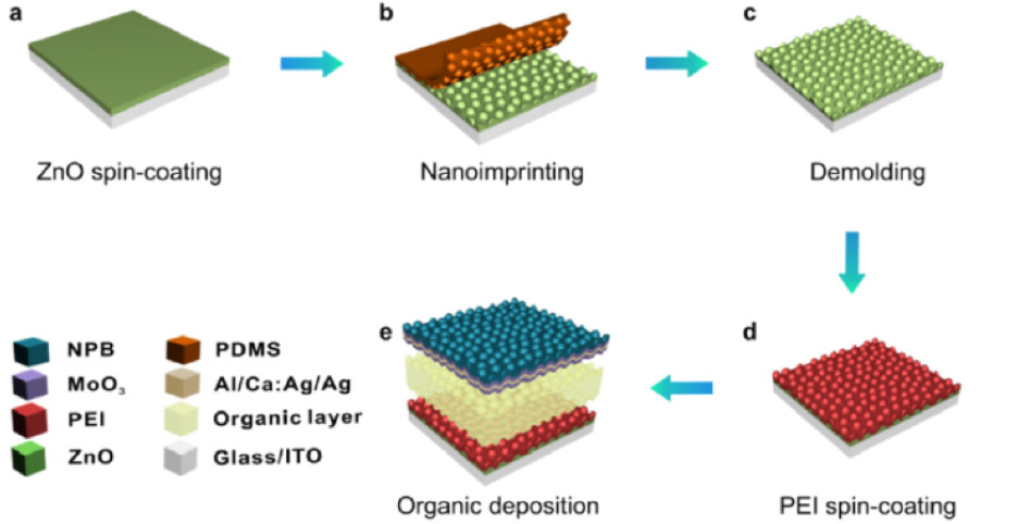 Fig. 1. Schematic illustration of the fabrication process of nanostructured white transparent OLEDs